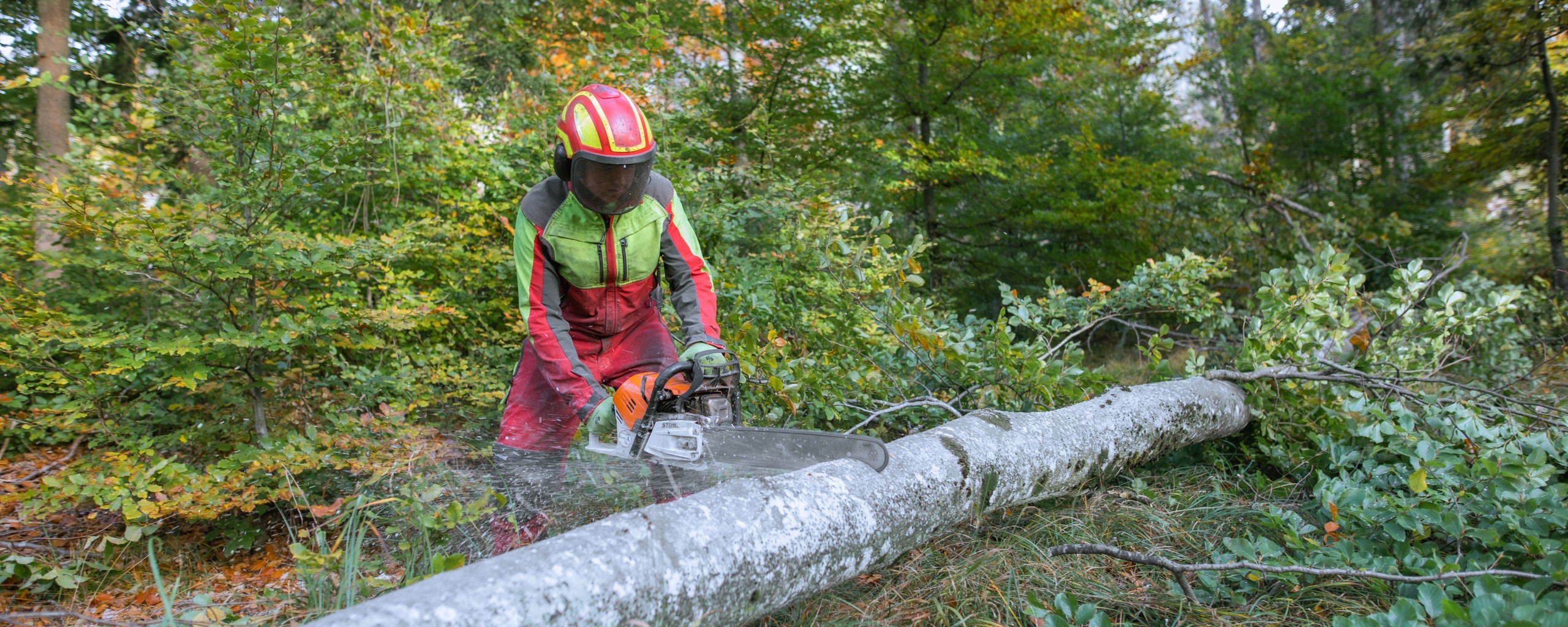 Forstwartinnen und Forstwarte arbeiten während des ganzen Jahres bei jedem Wetter im Wald. Sie arbeiten selbstständig oder im Team mit Forstingenieuren und Försterinnen. Sie tragen Schutzausrüstung in auffälligen Farben.