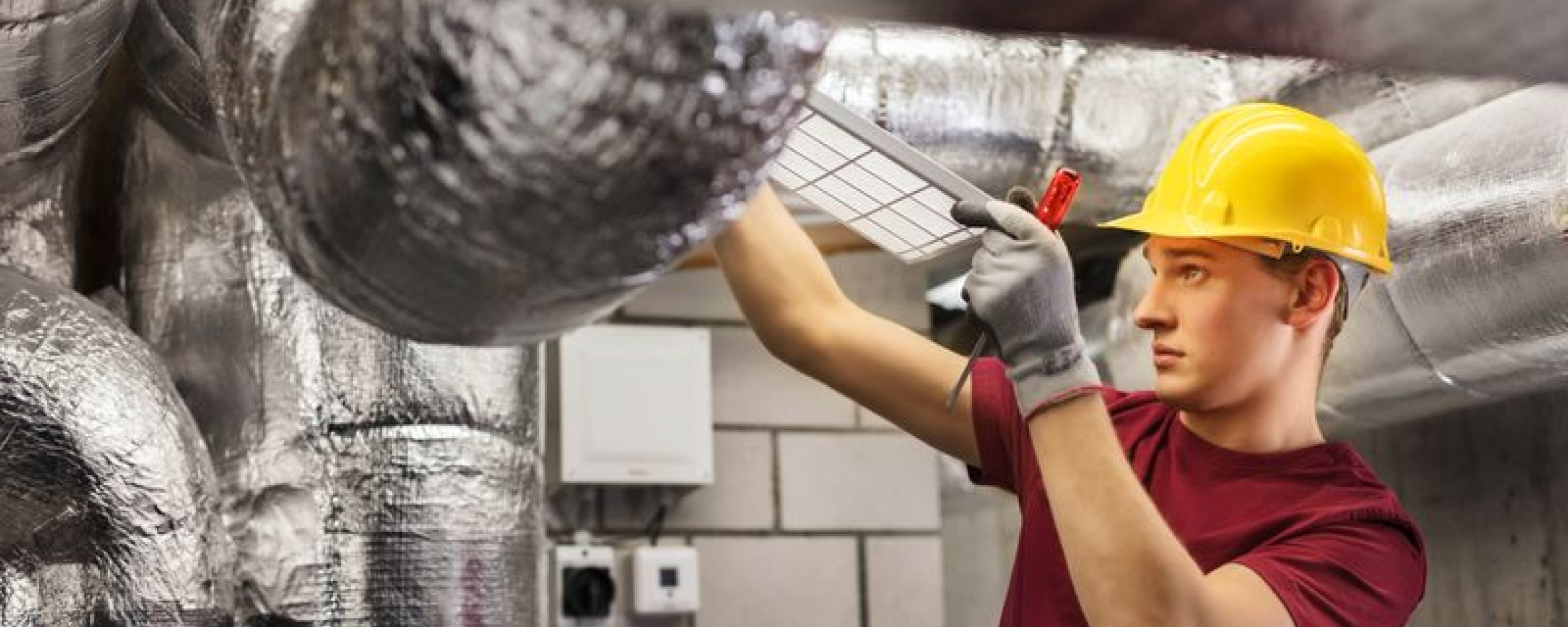 Lüftungsanlagenbauerinnen und Lüftungsanlagebauer produzieren und montieren Elemente von Lüftungs- und Klimaanlagen. Sie stellen Luftleitungssysteme, Armaturen und Bauteile her. Auf der Baustelle arbeiten sie in einem Montageteam, planen ihre Arbeiten, installieren oder stellen Lüftungsanlagen fertig. Auch Wartungs-, Reparatur- und Rückbauarbeiten führen sie aus.