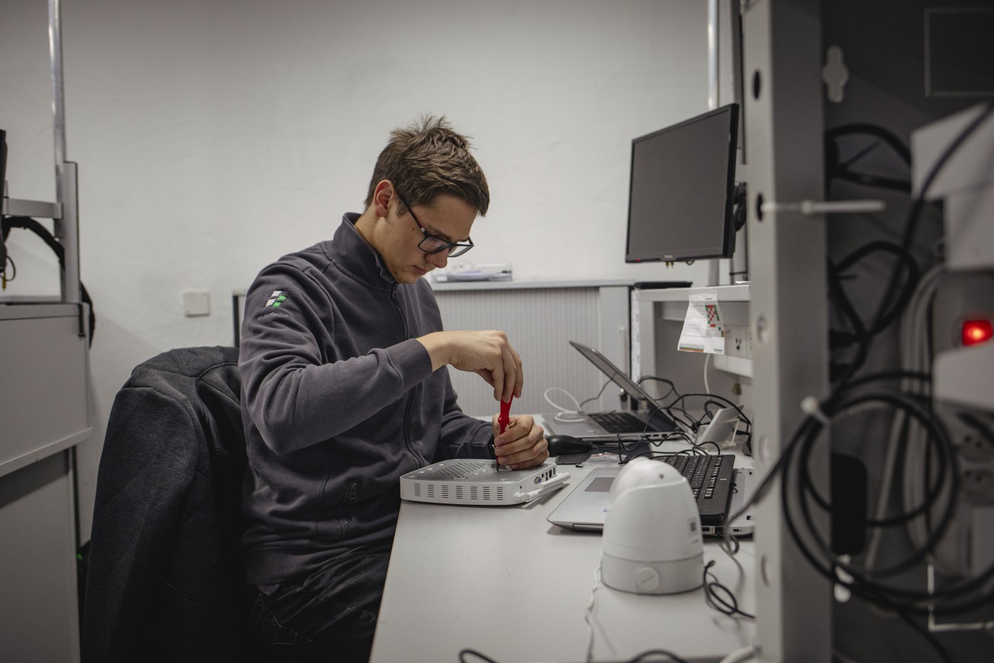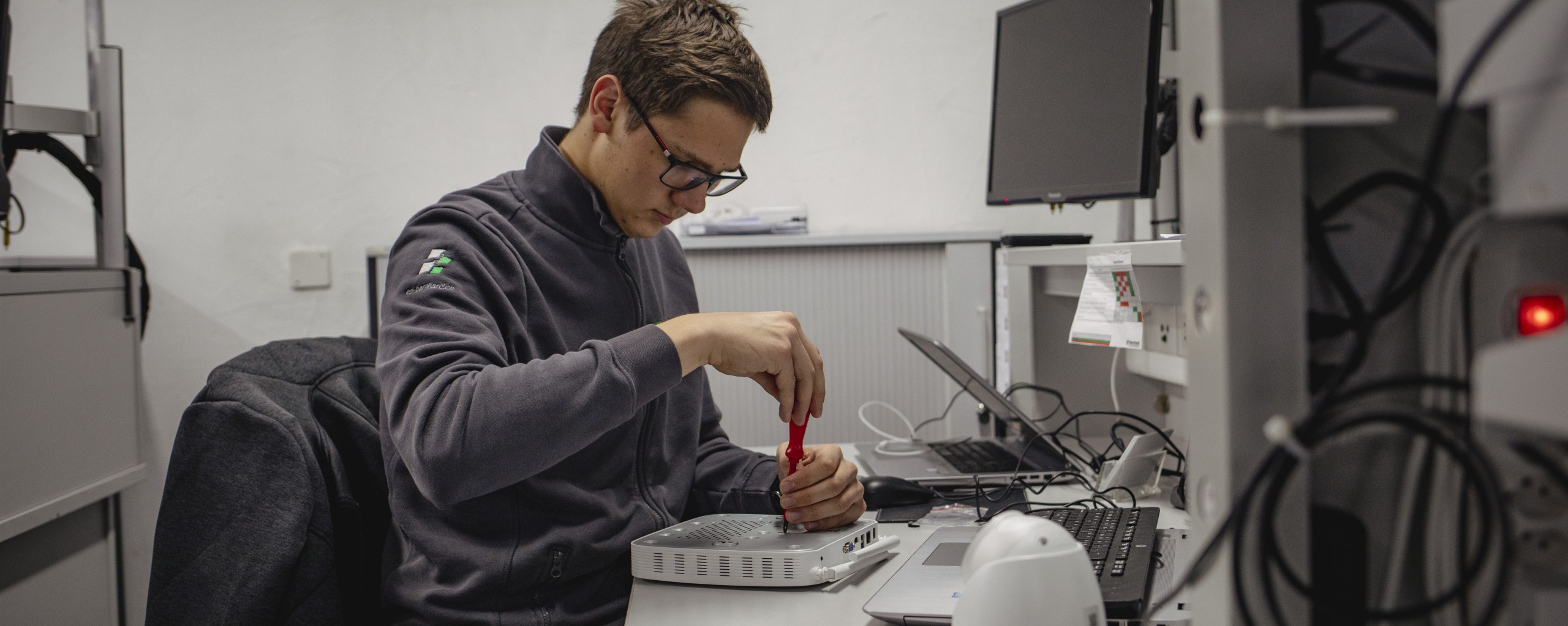 Multimediaelektronikerinnen und Multimediaelektroniker EFZ planen, installieren und programmieren elektronische Geräte und Systeme. Das sind zum Beispiel TV-Geräte, Lautsprecher, Computer, Sicherheitssysteme und Kommunikationsnetze. Die Berufsleute reparieren Geräte und ersetzen kaputte Teile. Ausserdem beraten sie die Kundschaft zu elektronischen Geräten und Systemen.