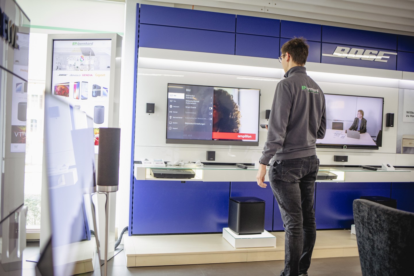 Multimediaelektronikerinnen und Multimediaelektroniker EFZ arbeiten je nach Schwerpunkt an unterschiedlichen Orten, zum Beispiel in Betrieben mit Reparaturwerkstatt oder in Multimedia-Fachgeschäften. Einige ihrer Tätigkeiten erledigen sie direkt bei der Kundschaft. Die Geräte, Marken und technischen Systeme, mit denen sie arbeiten, können sehr unterschiedlich sein. Es gibt Arbeiten, welche die Berufsleute unter Zeitdruck erledigen müssen, beispielsweise, wenn sie eine Störung beheben müssen. Auch an Veranstaltungen oder auf Baustellen müssen sie mit Zeitdruck umgehen können.