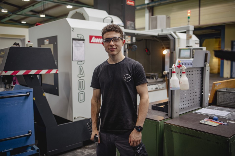 «"Mein Beruf ist sehr vielseitig, weil ich mit verschiedensten Materialien und Maschinen arbeiten darf. Ich lese Zeichnungen, programmiere, fertige, messe und baue zusammen. Besonders die Arbeit mit den Hightech-Maschinen macht mir Spass".»